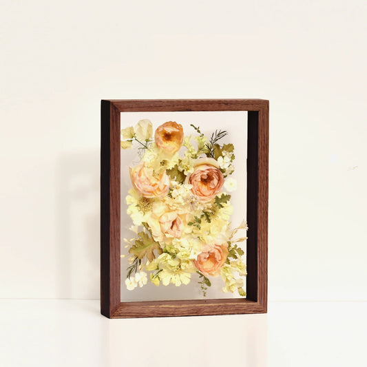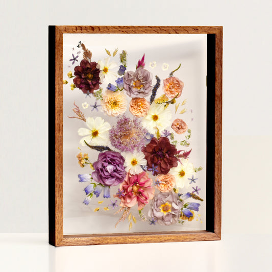 Our Signature Frame is the ideal way to showcase your preserved flowers as a stunning, three-dimensional museum piece. Handcrafted from hardwood oak and paired with UV filtering, anti-glare glass for a luxurious crystal clear display, it creates the illusion of your flowers floating in mid-air. You won't regret choosing one of our Signature Frames, as this collection is our most selected option.